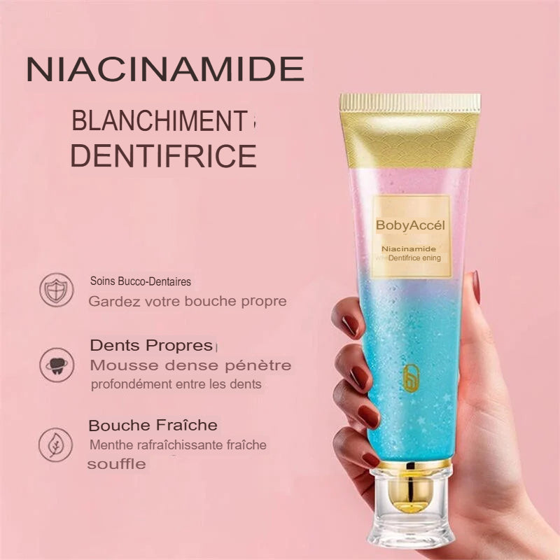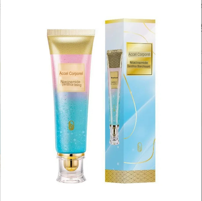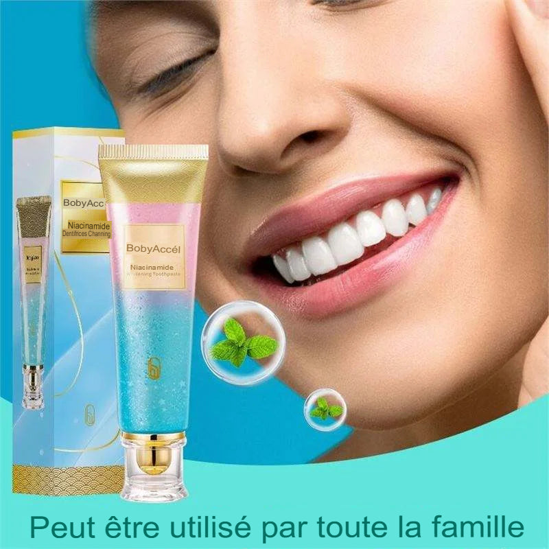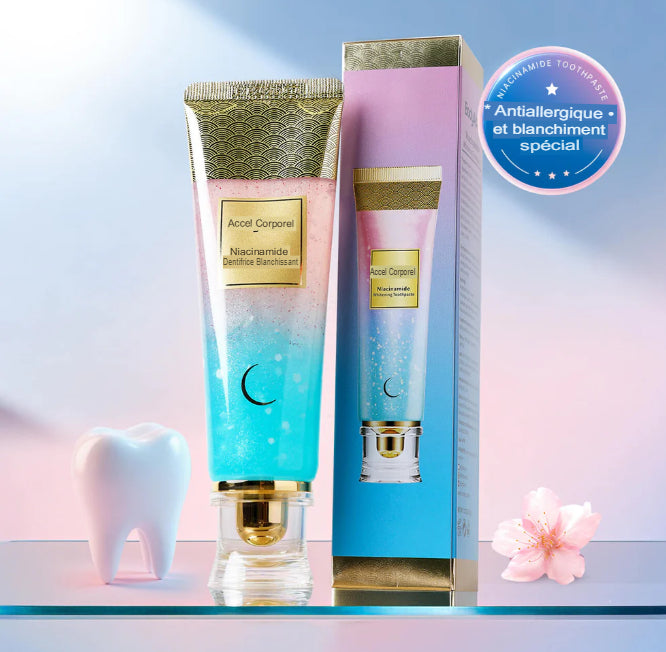 La BodyAccel Niacinamide Whitening Toothpaste est la solution idรฉale pour รฉliminer les taches tenaces (cafรฉ, thรฉ, tabac, vinโฆ) et retrouver des dents plus blanches naturellement.